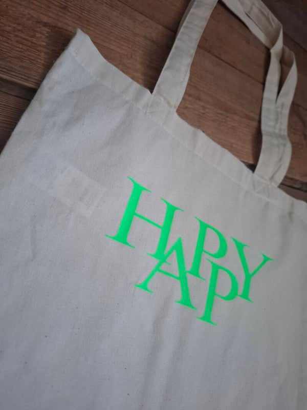 BAUMWOLLTASCHE Happy neongrün,natur
