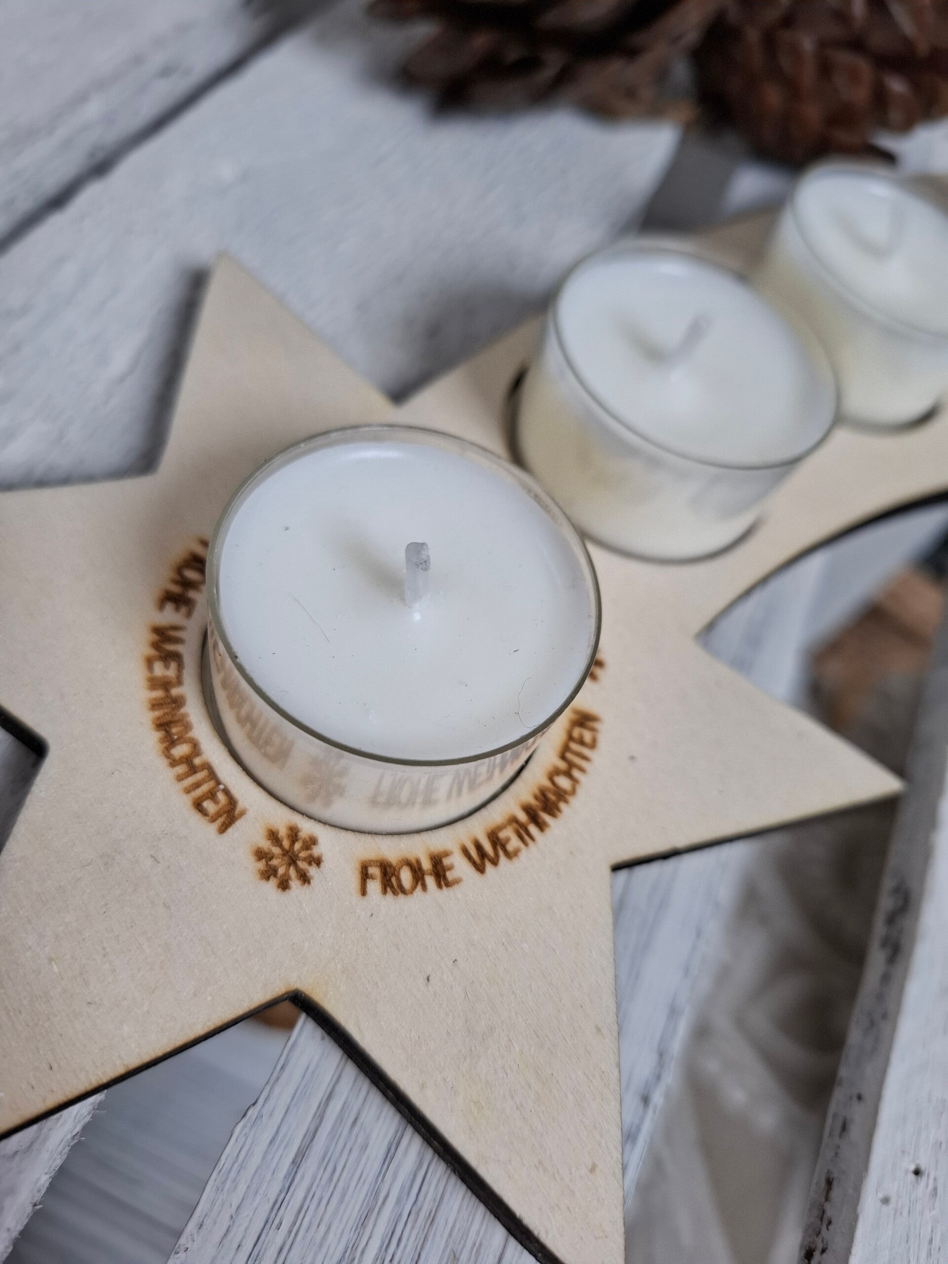 STERNSCHNUPPE Teelichthalter Holz WEIHANCHTEN