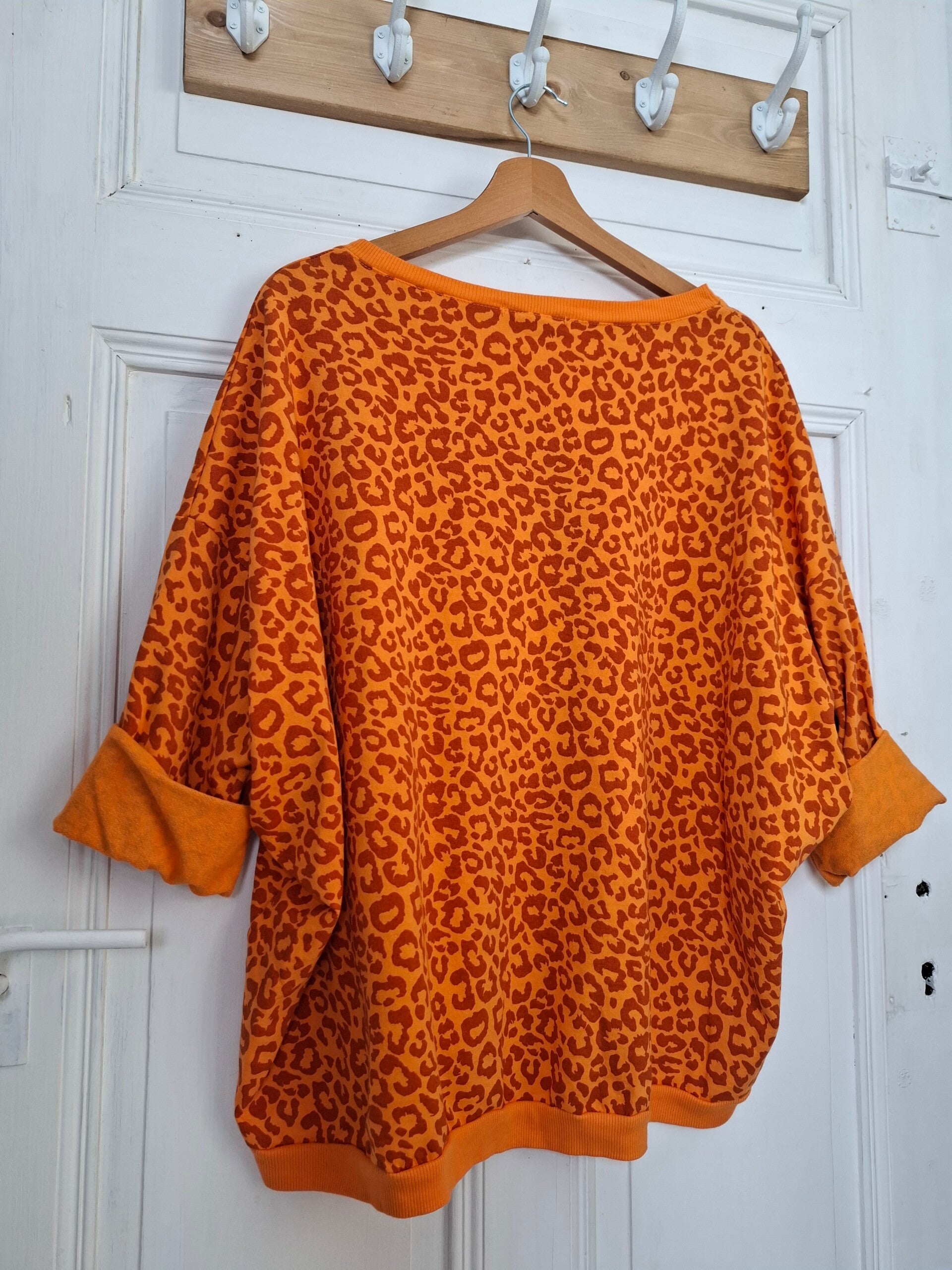 - Farbe: Orange mit Leo-Print